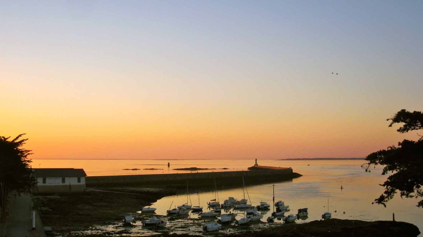 Comme je suis une gentille fille, je te mets tout de même ici, ce que je me suis mis dans les mirettes tout à l'heure. Isséo avait chaud. Je suis sortie pour qu'il pique une tête au bout de la cale de la SNSM. Et en chemin... Un soir sublime !